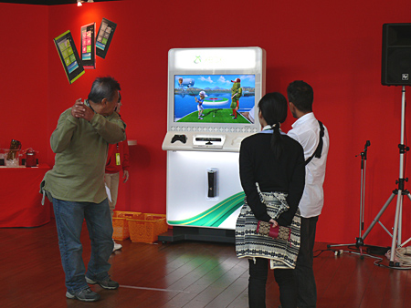 アンケートに答えながら端末を試す「タッチ&トライ」に参加すると、オリジナルグッズのプレゼントもある。ゲーム機「Xbox 360」でゴルフゲームを楽しむコーナーも設置し、「ニアピン チャレンジ」でハイスコアを出すとプレゼントがもらえる。
