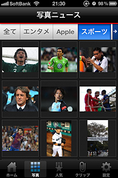 オリジナルの記事を含め、100以上の媒体・12カテゴリ(すべて/主要/エンタメ/Apple/スポーツ/コラム/社会/IT/びっくり/コネタ/恋愛/レビュー)のニュース記事を読むことができるアプリ。カテゴリごとに、25件ずつ最大100件(主要のみ最大10件)まで記事の見出しを表示する「見出し一覧」(ホーム)のほか、「写真一覧」「人気ランキング」を用意する。