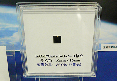 独立行政法人新エネルギー・産業技術総合開発機構(NEDO)の「革新的太陽光発電技術研究開発」テーマの一環として開発に取り組んだ結果、産業技術総合研究所(AIST)で非集光時世界最高変換効率を更新する36.9%の測定結果が確認された。