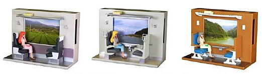 それぞれの車両の車内内装をリアルに再現し、窓の外側にスマートフォンを装着して、スマートフォンで風景動画を再生すれば、まるで列車の旅をしているかのような気分に浸ることができる。