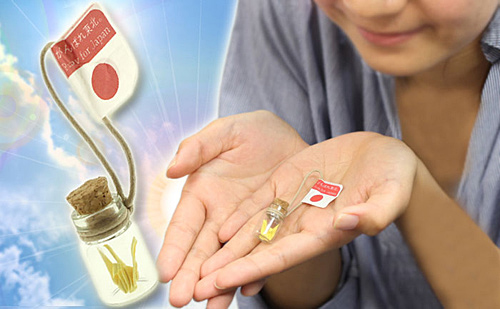 東日本大震災被災地の復興・再生に向けた支援活動の一環で、売上金の50%を工賃の支払いと支援金の寄付に充当する。ビンのサイズは、約縦2.6×直径1.3cm。紐を含む全長は約6.2cm。