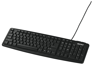 「BSKBUM02ENBK」は、スタンダードタイプの104キー英語配列キーボード。キーピッチは19mmで、メンブレン方式を採用している。ACPI機能に対応し、PC本体の電源を操作できる「Sleep」「WakeUp」「Power」のホットキーを備える。