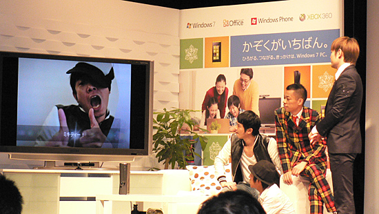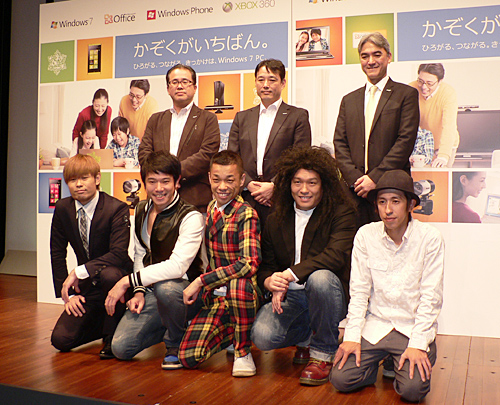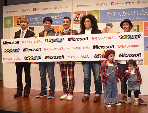 日本マイクロソフトは、11月9日、年末商戦向けのキャンペーンを発表した。「かぞくがいちばん。」をテーマに、Windows 7搭載PC、Office 2010、Windows Phone、Xbox 360、Kinectなどの製品とサービスの連携を訴求する。プレスイベントには、お笑いコンビの品川庄司さんなど、吉本興業の“パパ芸人”たちが登場し、ネタを交えながら各種製品やサービスの活用方法をアピールした。