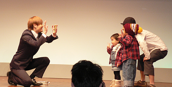 「かぞくがいちばん。」キャンペーンは、「子育ては楽しい!」を提案していく吉本興業のプロジェクト「PaPaPARK!(パパパーク)」と連携。イベントには、パパ芸人の品川庄司の品川祐さんと庄司智春さん、COWCOWの多田健二と山田與志さん、キングコングの梶原雄太さんが登場し、ネタを交えながら各種製品やサービスの活用法をアピールした。