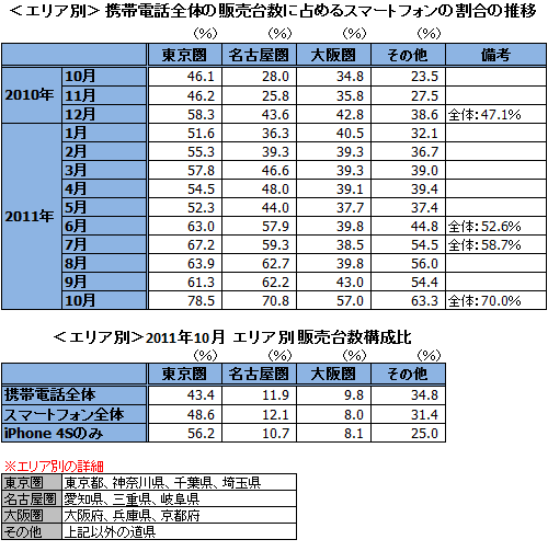 東京圏で特に人気の「iPhone 4S」、全国の販売台数の約6割を占める