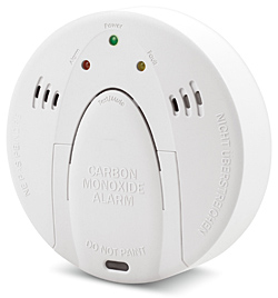 信頼性の高い日本製の電子化学反応式一酸化炭素(CO)センサを搭載し、室内の一酸化炭素濃度が一定値を超えると、3mで85dB以上の警報音と、赤LED点滅の光で知らせる。