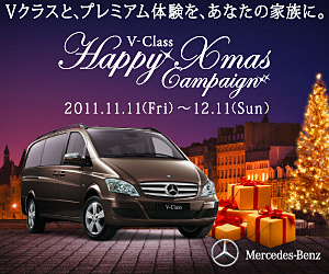 メルセデス・ベンツ日本は、「家族で楽しむプレミアム体験」のカタログギフト(30万円相当)と「Vクラス1年間プレミアムモニター」の権利を抽選で1名にプレゼントする「V-Class Happy Xmas Campaign~あなたのおうちにVクラスがやってくる~」を実施している。応募締め切りは12月11日。