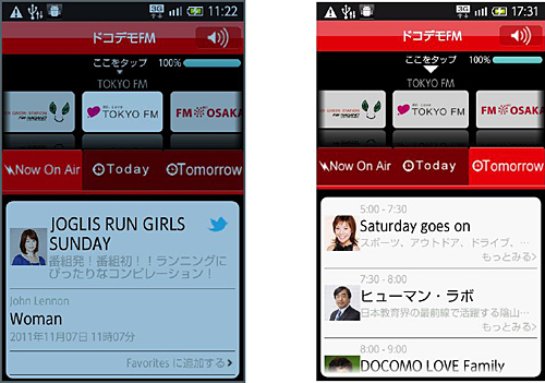 FMラジオが聞きにくかった場所でも、北海道から沖縄まで、全国のFM番組が快適に聞くことができる。気になった曲名情報をワンタップでメモできる「Favorites」機能や、Twitterに投稿してパーソナリティやほかのリスナーとコミュニケーションしながら聞ける「Twitter投稿」機能を備える。