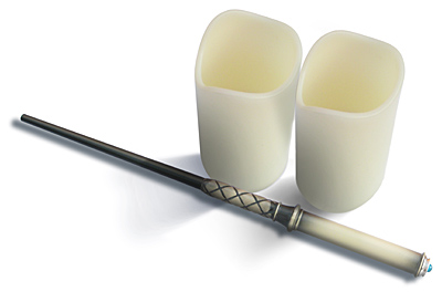 杖と2個のキャンドルのセット。杖でキャンドルライトのオン/オフや、タイマーのセットを遠隔操作することができる。キャンドルライトに強弱をつけることによって、本物のキャンドルのようなトーンを再現。本物のキャンドルと同じように、息を吹きかけることでライトを消すことができる。