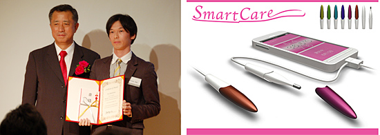 加藤さんの「Smart Care」は、スマートフォンに取り付ける基礎体温計。加藤さんは、「初めての受賞で大変うれしい。来年か再来年に商品化されたら、もっとうれしい」と喜びを語った。