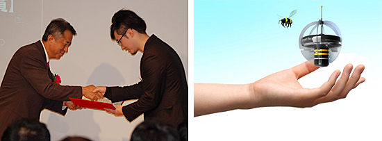 李さんの「Smart bee」は、空に飛ぶ蜂と鳥の時点を間接的に感じることができるトイカメラ。手の平ほどの「smart bee」を飛ばして、スマートフォンソフトウェアで操作する。「姪のために考えたデザインで大きな賞をもらえてうれしい」と語る李さんは、同時に「Idealistic部門」のシルバー賞も受賞した。