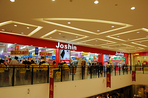 「ジョーシンアリオ川口店」は、アリオ川口の2階に6つの区画をつなげて出店。売り場面積は1484m2で、社員数は16人、パート・アルバイトは約20人。開店の前日には、川口市だけではなく隣接する東京都北区・板橋区などに約19万部の新聞折り込みチラシを配布し、10時の開店前には約700人が行列をつくった。