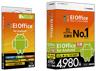 EIOffice for Android(左)、EIOffice MSオフィス2010対応版+EIOffice for Android