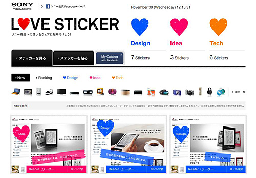ソニーは、インターネットの同社サイトの商品ページにハート型のステッカーを貼り付け、コメントを書き込むプロジェクト「Love Sticker」を、11月30日に開始した。
