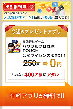 話題のアプリをレビューつきで解説。毎週土曜日に配信する。「Free App Mail」に登録して抽選に参加し、当たりがでると人気有料アプリがもらえる。
