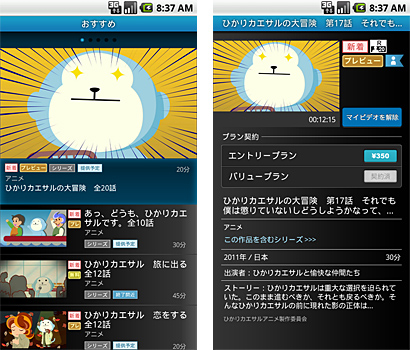 NTTぷららは、映像配信サービス「ひかりTV」で、スマートフォンやタブレット端末でビデオ作品を視聴できるモバイル専用サービス「ひかりTVもばいる」を、12月5日から提供する。