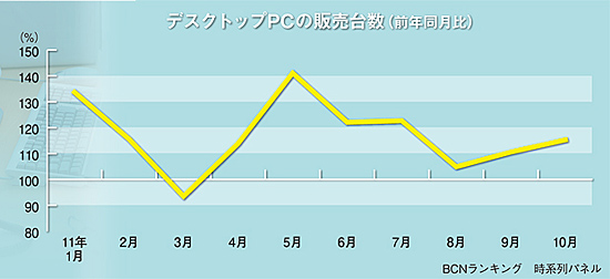 データのバックアップ用途なら、ノートPCに限らず、デスクトップPCでもかまわないはず。実際、デスクトップの販売台数も伸びている。ノートPC同様、今年に入ってから、3月を除いた月は前年を上回っている。