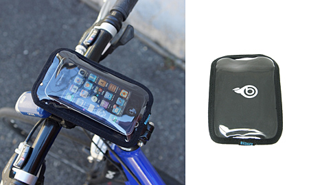 「DN-KSPH-BIKEMOUNTER」は、iPhoneやXperia、GALAXY Sなど、各社のスマートフォンを自転車のハンドルに取り付けることができる。タッチ操作に対応するクリアウインドウを採用し、ケースを自転車のハンドルに取り付ける専用マウントが付属する。