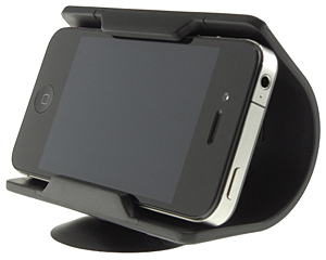 「DN-KSPH-SMARTHOLDER」は弾力性の高いTR(テトロン/レーヨン)素材を採用し、幅8cmまでのスマートフォンをしっかりと固定できる。接続部は吸盤で、平面で凹凸のない場所ならどこでも設置できる。