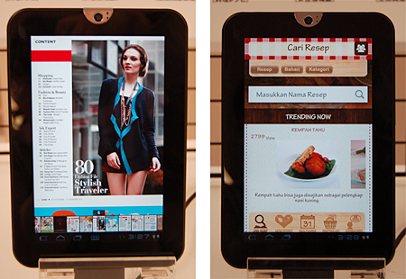 インドネシアで販売する「REGZA Tablet AT1SO」は、7型のタッチパネルを搭載したタブレット端末。料理レシピ、女性情報誌、生活関連情報など、七つのコンテンツをプリインストールした状態で販売する。価格は日本円で5万円程度。