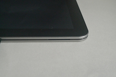 「REGZA Tablet AT700」の一番の魅力といえるのが、約7.7mmという薄さと約558gという軽さだ。箱から取り出して持った瞬間、その軽さに驚いた。画面の大きさに対して明らかに軽く、一瞬、「中身のないモックアップ?」と疑ったくらいだった。薄さも圧倒的で、一般の週刊誌や月刊誌よりも薄い。これならカバンに入れても、かさばることはない。