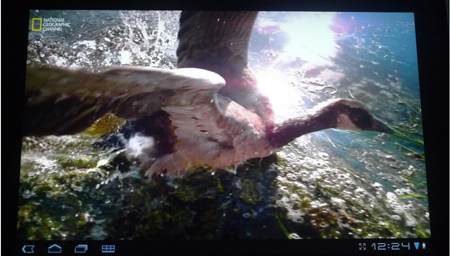 光沢感のある液晶ディスプレイは、「さすが薄型テレビを手がけている東芝」と実感。高画質表示の映像は、タブレット端末で視聴していることを忘れてしまいそうだった。動画閲覧用として十分なクオリティだ。