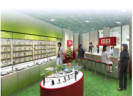 また、イー・モバイルショップを併設しており、その場でイー・モバイルデータカードを契約できる。