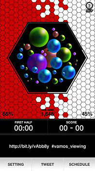 「バモれ。アプリ」は、観戦中にどちらのチームの応援が盛り上がっているかを可視化するAndroid専用アプリ。自分の応援したいチームを選び、スマートフォンを振ったり、画面をタップしたりすることで、ネットワーク上の応援合戦に参加できる。さらに、Twitterと連携し、世界中のサポーターが配信する応援メッセージや感想を読むことができる。Android 2.1以降に対応。