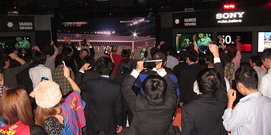 ソニーは、12月15日、開催中の「FIFA クラブワールドカップ ジャパン 2011」に合わせ、世界中のサポーターとつながり、互いのチームの応援合戦が楽しめるAndroid専用アプリ「バモれ。アプリ」を使ったパブリックビューイングを開催した。