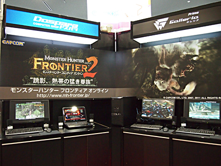 初日はゲームファンが詰めかけ、ドスパラオリジナルPC「ガレリア」で『モンスターハンター フロンティア オンライン』や『バトルフィールド3』など、オンラインゲームのタッチ&トライができるコーナーが盛り上がっていた。