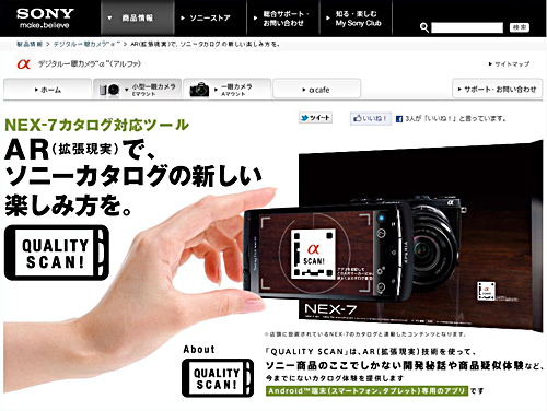 ソニーマーケティング、ミラーレス一眼「NEX-7」をARで体験、カタログ連動アプリ「QUALITY SCAN!」