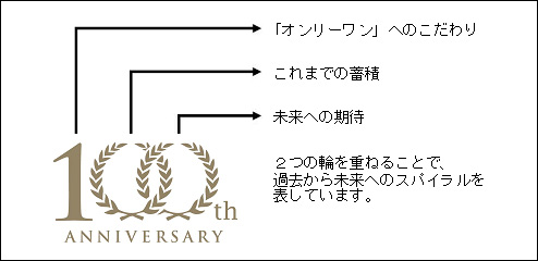 制定した「100周年記念ロゴマーク」は、「オンリーワン」へのこだわり、これまでの蓄積、未来への期待という三つの思いを込めてデザインした。1月1日から12月31日まで、このロゴマークをグローバルに展開し、テレビCMなどの広告宣伝物やウェブサイト、商品カタログ、社内外刊行物、名刺などに使用する。