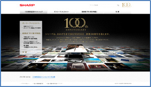 1月1日のウェブサイトのリニューアルでは、デザイン、レイアウト、ナビゲーションを一新し、検索しやすくする。新設の「100周年記念サイト」(http://www.sharp.co.jp/100th/)には、創業者の生涯を紹介する「早川徳次物語」やオンリーワン商品の歴史を紹介する「オンリーワンヒストリー」などを掲載し、100周年の情報発信の場とする。このほか、100周年記念行事なども検討している。