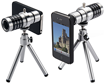 iPhone4カメラキット(望遠レンズ・iPhone4S対応・光学12倍・スタンド付) 400-CAM009