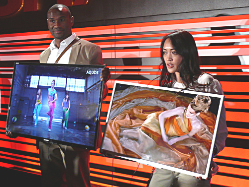 会見では、液晶テレビ「AQUOS」シリーズで3Dに対応した80インチのモデルを北米で発売することを発表したほか、法人向けにタッチパネル式の大型液晶ディスプレイ「AQUOS BOARD」を提供することも明らかにした。