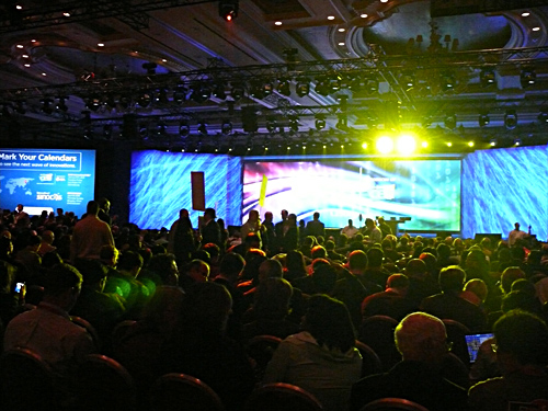 今年で最後となるマイクロソフトの基調講演。会場は多くの人でごった返した