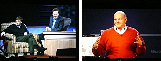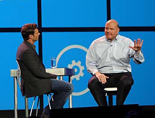 これまでバルマーCEOの基調講演というと、ステージの端から端までを歩き回り、ときには興奮して大声で叫ぶこともあるという異色のスタイルだった。それが今回は、登場したときこそいつもの調子かと思わせたが、いざ講演となるとイスに座って司会の質問に答えるかたちで進行。内容は、過去を振り返りながら新製品の魅力を語るオーソドックスなものだった。