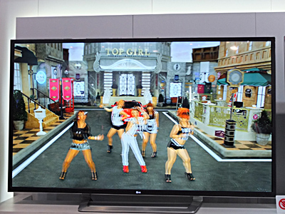 LGブースの入口に貼り巡らしてある3Dテレビ