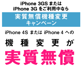 現在利用中のiPhone 3G/3GSからiPhone 4/4Sに機種変更すると、iPhone 3G/3GSで残っている分割支払金と同等の金額を通信料金から毎月値引きする。「月月割」適用が終了し、端末代金を完済している場合や、新スーパーボーナス以外で購入した場合は、一律6000円をキャッシュバックする。キャンペーンの適用で、iPhone 4Sの16GBモデル、iPhone 4の16GB/8GBモデルは実質負担0円で機種変更できる。