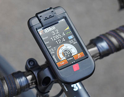 「iBike iDash CC」は、iPhone/iPod touchを収納するケースと、ケースを自転車のハンドルに取りつけるマウントで構成。ケース内部にDockコネクタを搭載し、専用アプリ「iBike Coach」を使ってワイヤレス通信規格ANT+に対応した機器と接続できる。標準でスピードセンサが付属し、タイヤのサイズや身長・体重などを入力して、走行速度や走行距離、消費カロリー算出など、iPhone/iPod touchをサイクルコンピュータとして使用できる。