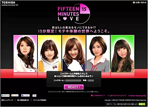 東芝は、2月7日、タレントの矢部美穂さんや、お天気お姉さんの西田有沙さん、人気声優の佐藤有世さんなど、5人の美女と15分間だけ擬似メールができるウェブキャンペーン「FIFTEEN MINUTES LOVE」を開始した。期間は3月末まで。