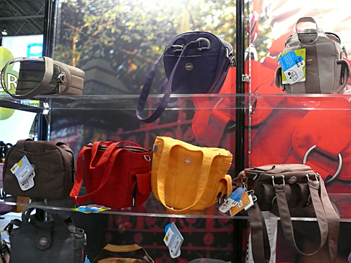 浅沼商会は、女性ユーザーを意識して、「自分だけのフォトスタイル」を表現。英国の人気ブランド「HUGGER」の正規代理店となり、オシャレなバッグで楽しい写真生活をアピールしていた。
