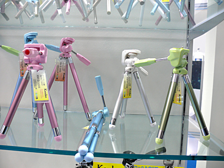 ケンコー・トキナーは、パステルカラーで軽いスリックの三脚を展示している。これまでのスリック三脚のイメージを変える製品だ。