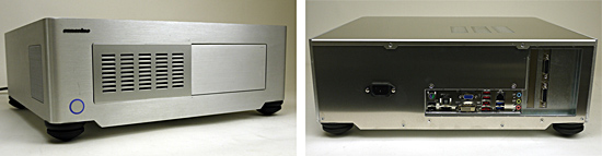 ケースは、Origen AE Technologyの「S14V」に、オリジナルの完全ファンレス仕様パネルへの交換、エア抜き用スリットを追加した天板パネルの制作・交換、スリット入りアルミフロントパネルへの交換、スチール製オリジナルHDDベイの制作・交換、光学ドライブの削除、インシュレータの交換など、各種の改造を施した。さらに、160WのDC-DCコンバータつき12V単一出力電源を搭載する。