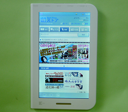 その点、専用端末は、読書に必要な機能や使い勝手を追求している。7型カラー液晶を搭載した「BookPlace DB50」は、単行本のように片手で持つことができ、通勤電車のなかで立ったまま読んでいても、重さで腕が痛くなることはなかった。ボディがつやつやしていて、ちょっと滑りやすいが、持ち方を工夫すれば片手でしっかりと持つことができる。