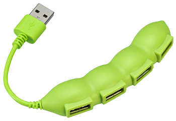 グリーンハウス、さやえんどうデザインの4ポートUSBハブ「GH-UH204MAME」など