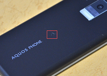 「おくだけ充電」対応の「AQUOS PHONE f SH-13C」。背面のロゴが目印