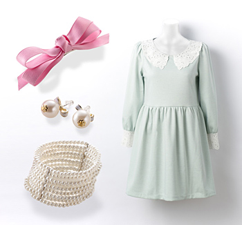 Aコースは、「春コーデファッション&<お名前入り>直筆サイン色紙」。「スーパーフェミニン」をコンセプトに西野さんがコーディネートしたグリーンのシャーベットカラーのワンピース、パール風のブレスレットとピアス、ピンク色のリボン型の髪用バレッタのセットと、西野さん直筆のサイン色紙が抽選で3人に当たる。