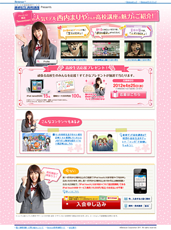 雑誌『Seventeen』の専属モデル・西内まりやさんが、「進研ゼミ高校講座」の特設サイトでiPhone/iPod touchを使った学習スタイルを紹介する。また、「進研ゼミ高校講座」のYouTube公式チャンネルでは、西内さんが出演するムービーを放送している。
