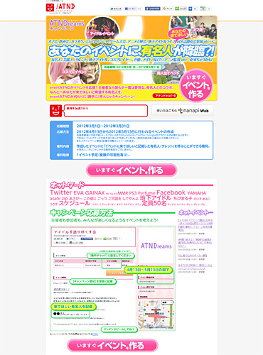 「ATNDreamsキャンペーン」に応募して選ばれると、「自分が主催するイベントにこんな有名人が来てほしい」という願いがかなう。希望する有名人と、自分のイベントで一緒に食事を楽しんだり、カラオケで盛り上がることができる。